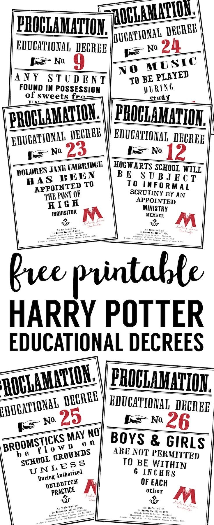 Harry Potter Educational Decrees free Printables Paper Trail Design