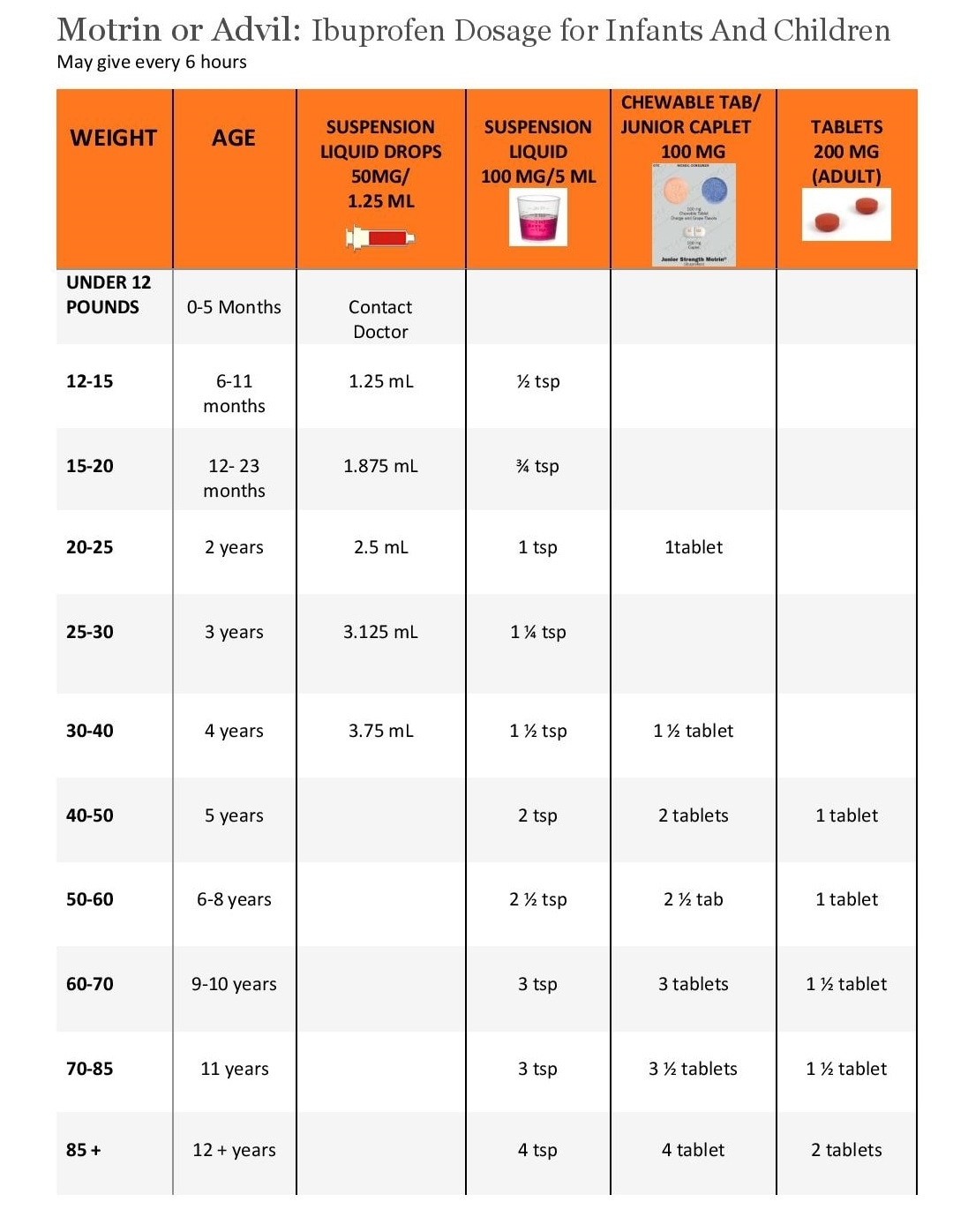 Printable Infant Tylenol Dosage Chart